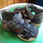 Кожаные босоножки, фирмы D.D.Step (Венгрия), покупали в "Антошке", размер 24, профилактическая стелька (14,5 см), высокий жесткий задник отлично фиксирует ножку, на липучке, очень удобные! Состояние х...