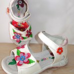Босоножки очень лёгкие , внутренняя часть натуральная кожа, верх качественный кожзам , застёжки две липучки, стелька ортопед
