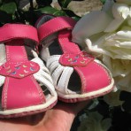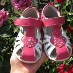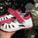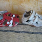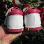 Розовые с белым 2 пары 21 и 24 р, полностью кожа, супинатор, жесткий задник. Из недостатков есть мелкие царапины на носочках, видно на фото.