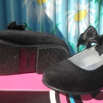 Стильные туфли Gymboree с атласным бантом для девочки, черного цвета, под велюр.