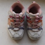 Продаю: детские кроссовки, размер 22, по стельке 14 см, цвет белый с розовым, слегка сбита носочная часть, цена 20 грн.; кроссовки, размер 23, по постельке 15 см, цвет серый с малиновым, в хорошем сос...