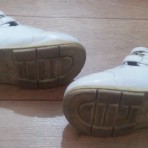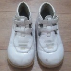 Ботиночки 15см. по стельке. Белый лаковый кожзам. Внутри кожаные. Застёгиваются на две застёжки - липучки. Общее состояние на 4-(из-за немного потёртых носков). А так они целые.