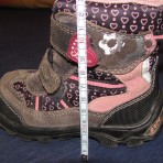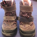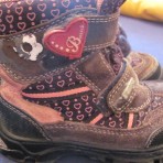 Цвет - серо-фиолетовый. Натуральная замша, а на голенищах плащевка. Носки прорезинены, не потерты. Состояние на фото, стерлись цветочки и возле языка немного протерлось. На липучках - язык предотвращает от попадания воды в сапог. Не текут, прошиты хорошо. Утепленные. Не высокие 13 см. Мы их носили как демисезонные. Покупали за 950 грн, носили 2 ребенка. Один за одним. Поэтому потерлись рисунки, но на теплоту это не влияет.