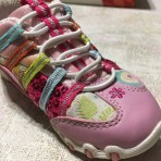 Кроссовочки яркие, блестящие, с пайетками, очень порадуют Ваших маленьких модниц. Очень легкие, на ножке не чувствуются. Осенью успели одеть пару раз, на весну выросла ножка. Состояние идеальное.