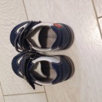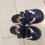 Застежки на двух липучках ,ботиночки бело-синего цвета.