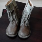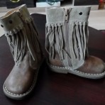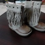 Кожаные, со вставками замши, замшевыми кисточками. Внутри - тоже кожа и есть супинатор.