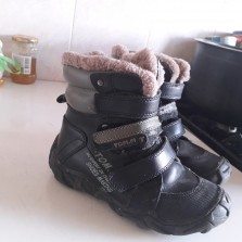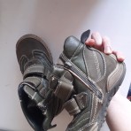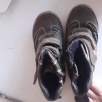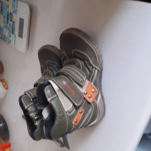 Осенние ботинки года на 4-5, хорошее качество, носили мало, не сбиты не ободаны, но на одном ботинка у бегунка молнии потерян хвостик, что легко поправить вставив скрепки.