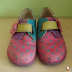 туфельки фирмы elefanten. Сверху нубук (кожа), внутри кожа. Размер 28, по стельке 18 см. Жесткая пяточка, маленький каблучок,подошва хорошо гнется, соответствуют ортопедическим требованиям.