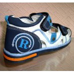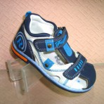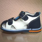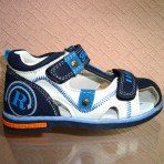 Бело-синие сандалии . Верх - искусственная кожа, стелька - натуральная кожа. Размеры с 26 по 31.