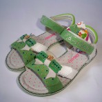 Красивые босоножки из качественной кожи фирмы J&G, зарекомендовавшей себя качеством продукции. Внутри очень мягкие, не натирают ножку. Подъём регулируется, там, где бантик есть липучка. Стелька с супинатором, кожаная, подошва гибкая. Украшены стазами. Размеры в наличии: