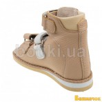 О-120 - это новая модель ортопедических босоножек Ортофут в нашем магазине. Ранее у нас не было в ассортименте босоножек с плоскими стельками. Преимущество этой модели заключается в том, что босоножки имеют все необходимые лечебные характеристики: это высокий плотный задник и специальный каблук Томаса, но при этом наличие плоской стельки позволяет вложить в сандалик ту индивидуальную стельку, которая была изготовлена специально под ножку вашего малыша. С босоножками О-120 Вам больше не придётся срезать супинаторы или отрывать стельку в ортопедических сандаликах, для того, чтобы вложить вашу индивидуальную стельку вовнутрь. Жесткий задник удерживает пяточку в правильном положении. Три липучки надежно фиксируют ножку в обуви. Сандалики изготовлены из натуральной кожи.