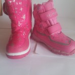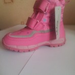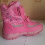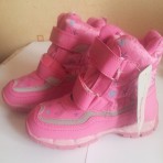 Термоботиночки. Для их производства использована комбинация кожзаменителя и текстиля(термоматериала). Внутри искусственный мех. Застегиваются на две липучки. Ботиночки легкие, ножке в них комфортно и тепло, также подойдут под любую одежду. Имеются размеры с 27 по 32.