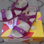 Кожаные босоножки "Фламинго" для девочки 32 размер, длина по стельке от края до края - 20.3см, от строчки до строчки -18,5см. Полнота регулируется липучкой, застежка тоже липучка. Состояние отличное, ...