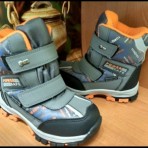 Застёгивается с помощью двух липучек. Материал верха - иск.кожа и термо-материал. Внутри нат.шерсть. На сапожках присутствуют светоотражающие вставки. Противоскользящая подошва.