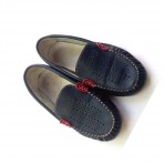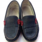 Лёгкие детские туфли мокасины мальчику с перфорацией синие демисезон