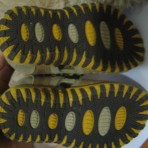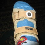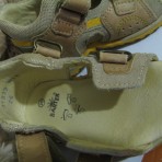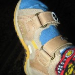 Носили совсем немного - малыш только учился ходить. Единственный нюанс - носок открытый, мы чуть загребали ножками во время ходьбы по асфальту и сбили чуть кожаную стелечку впереди, больше только на одном босоножке (на правом, см.реальные фото). Но это видно только в макросъемке, на ножке и в реале это совсем не бросается в глаза, т.к. сама стелька микропористая.