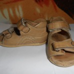 Кожаные босоножки 19 размера, ортопедические.На левом босоножки не много по дёрта.