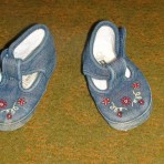 Мокасины, можно и мальчику, и девочке, джинсовая ткань, написано размер 21-22, они очень маленькие, длина по стельке 11 см.