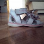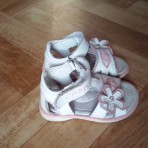 Кожаные сандалии на девочку,бело-розовые,размер 21 ,длинна по стельке-13 см,состояние хорошее