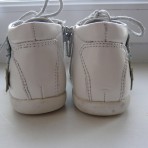 Кожаные ботиночки Little Deer после одного ребенка, натуральная кожа и снаружи, и внутри. Симпатичные аппликации-рыбки. Дефекты: сбита кожа на носках, но если закрасить белой краской, то практичес...