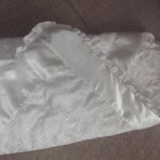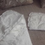 Конверт-одеяло белого цвета с подушечкой и матрасиком с кокосовой стружки для удобства еще не окрепшей спинки новорожденного.Матрасик легло можно изъять с конверта,а сам конверт использовать как одеял...