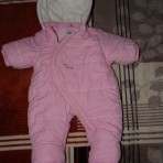 Итальянский комбинезон, расчитан от 3х до 6 мес. но мы носили примерно с 2 и до 7 мес. Отстегиваются пинетки и капюшон, рукавички в комплекте.