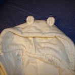 Чебурашковый мех, утеплитель, трикотаж. На холодную осень, теплую зиму. Мы с поддевой носили даже в небольшой мороз. Белый, с ушками на капюшоне.