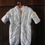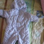 Демисезонный комбез, р.62. Очень удобный, не стесняет движения малыша. Длинна с ножками - 58 см. Верх - плащевка. Никаких дефектов нет.
