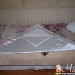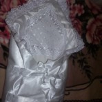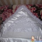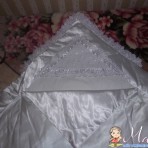 Конвертик из белого атласа, на синтепоне, украшен кружевом, внутри простынка х/б с кружевом. Конвертик, скорее всего для ребеночка весна/осень.