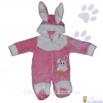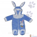 Теплый махровый комбинезон. Капюшон с ушками зайки, сзади хвостик, закрытые ножки, удобная застежка-молния. Впереди – симпатичная аппликация зайки с морковкой. Станет замечательным элементом верхней одежды в гардеробе вашего малыша. А также прекрасный подарок для ваших друзей.