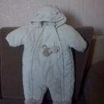 Демисезонный комбинезон молочного цвета,подходит как девочкам,так и мальчикам.Возраст 3-6 мес. Мы носили даже до 8.На синтепоне. Состояние отличное,единственный минус-утеряны от него варежки,но могу в...