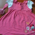 Платье с Минни 100% хлопок, носили много(наше любимое),состояние на 4-,есть пара пятнышек на груди(видно не фото), на 3-6 месяцев (реально до 8-ми месяцев),фирма George для Disney baby. Цена 10 грн