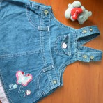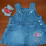 Сарафан фирмы Cherokee на рост 56 см (мы одевали до 64 см под лосинки), на подоле очень красивая вышивка, джинс средней плотности, впереди карманчик на груди сзади на попе. Цена 20 грн