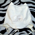 Очень классная мягусенькая флисовая шапочка на хлопковой подкладке, вышивка котик, маленький козырек от солнца. Состояние новой. На ОГ - 39 см. Мы носили вместе с комбинезончиком. 40 грн.