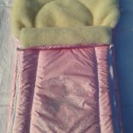 Внутри конверт из теплого, густого полушерстяного меха, дополнительным слоем утеплителя и для большей мягкости служит синтепон.
