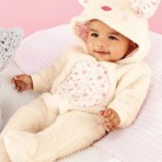 Мягкий розовый комбинезон с кроликом на капюшоне и цветочной аппликацией на животе. С подкладкой по всей длине. фирма NEXT