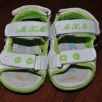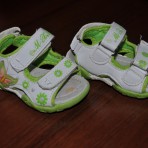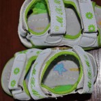 Босоножки 19 размер в отличном состоянии(бегали по комнате ),липучка фиксирует любую ножку,сзади пяточка тоже стягивается липучкой ,плотно сидят и очень удобные для первых шагов.Стелька кожа, ортопед. ПРОДАНО