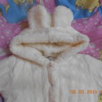 Красивый теплый человечек на весну для девочки молочого цвета!!!!Рост 62 см.Вязанный снаружи и махровый внутри!!!