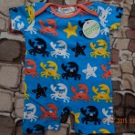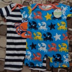 1.фото 1-4 Размер на бирке 56-62(заказывала через интернет-магазин Бонприкс,в реальности оказались больше,чем указано),тоненький хлопок,отличного качества.,внизу на кнопках.Замеры:полосатый-длинна 45,длинна до кнопки 33,5,ширина 28;голубой с крабами-длинна 42,до кнопки 32,5,ширина 28.Цена за один 75грн,если два то 135 грн.