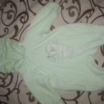 в идеальном состоянии очень мягенький и приятный к телу!0-3мес капюшон отстегивается и рукавчики закрываются перчатками.