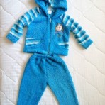 Синий махровый костюмчик до 6 месяцев (рукав от шеи 30см, длина 31см, штанишки - внутренний шов 24 см, длина 41) - 60 грн;