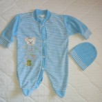 Велюровый бодик в полосочку с шапочкой: от плеча до промежности 34 см, до пяточки 12см, рукав от плеча 22 см - 50грн;