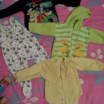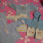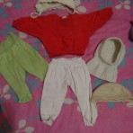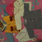 вещи одевали на девочку,но некоторые достались от братика,поэтому они и для девочки и для мальчика. некоторые нужно отстирать. отдам за шоколадку милка и бананы. в пакете 28 вещей(вместе с шапочками) ...