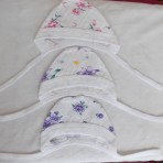 Шапочки на новорожденную девочку приблизительно до 1 мес. Хлопок 100%, качество отличное. Цена за 1 шапочку 10 грн., за 3 шапочки- 25 грн. Новые. После покупки постираны, не одевались. Забыли про них)
