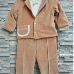 Состоит из велюрового пиджака на трикотажной подкладке (украшен вышивкой и стразами), велюровых брюк и трикотажного боди (украшен бабочкой ).