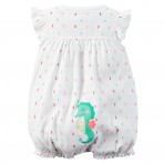 Фото 2-3 - песочник беленький на кнопках, сзади вышивка морской конёк. Резиночки на ножках отлично смотрятся на худеньких ножках новорожденных деток. Ребёнок не выглядит как в мешке! На рост 55 см. Состав 100% хлопок. Цена 50 грн.