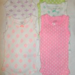 Фото 6-7 - бодики с красивейшими кружевными оборочками, внизу на кнопках. Бодики в обтяжечку, отличный вариант для худеньких новорожденных! То что нужно в жару! Состав 100% хлопок, кроме ярко-розового - 60% хлопок, 40% полиэстр (из-за неонового розового цвета). На рост 55 см. Цена за 5 шт. 100 грн.