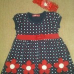 -Платье синее в красн .горошек и красн. повязочка 5-8 мес.рост до 80.