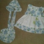 -(Белый в голубой цветочек,платье, трусики, панамка.)