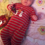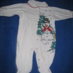 Удобные человечки для деток к новому году.Красный в полоску размер указан 0-3 мес.- цена 70. Белый размер указан 12 мес. -цена 40 грн